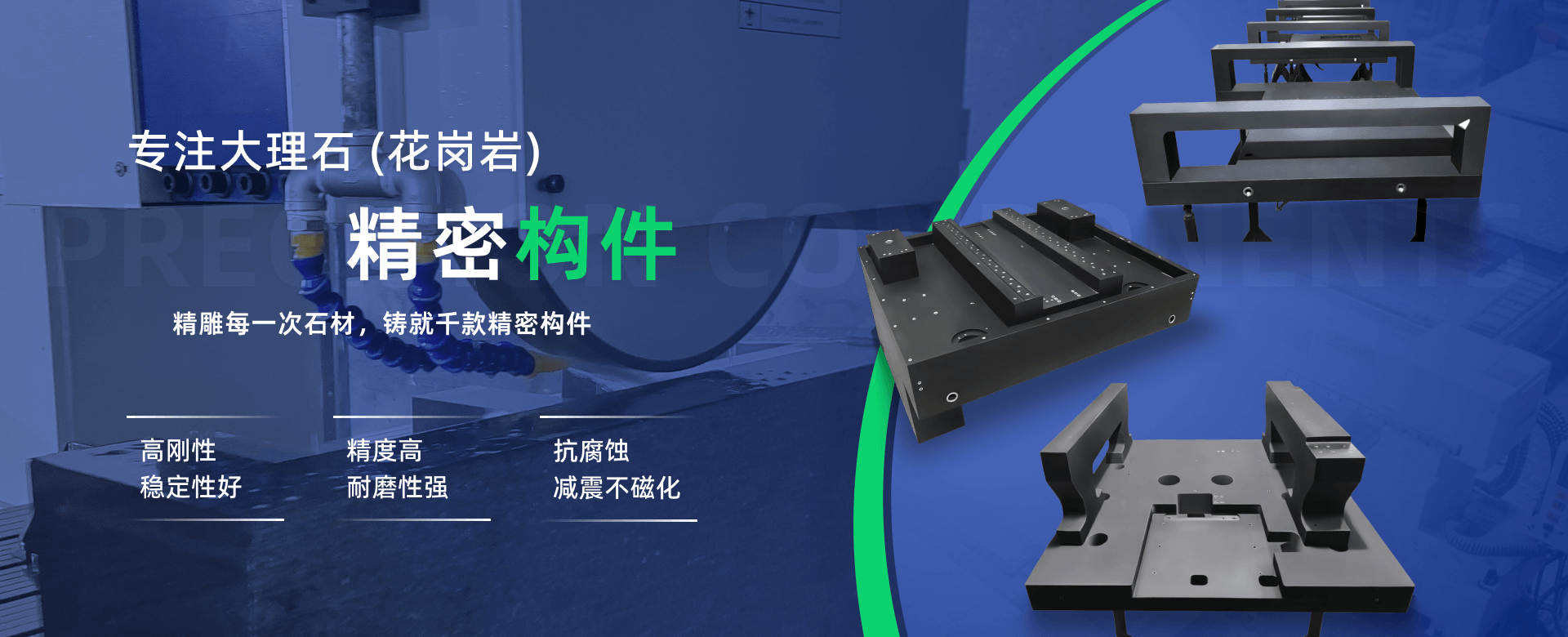 產品廣泛應用于3C、激光、半導體、醫療、新能源、檢測設備、直驅運動平臺、機床、非標自動化設備等領域。自成立以來,公司以“客戶價值為核心,卓越品質為基石,奮力鑄就中國第一”的企業高度,依托先進設備、一流技術與高素質團隊,在石材加工與開發應用領域持續創新,以穩定的產品質量贏得客戶廣泛信任與贊譽。
